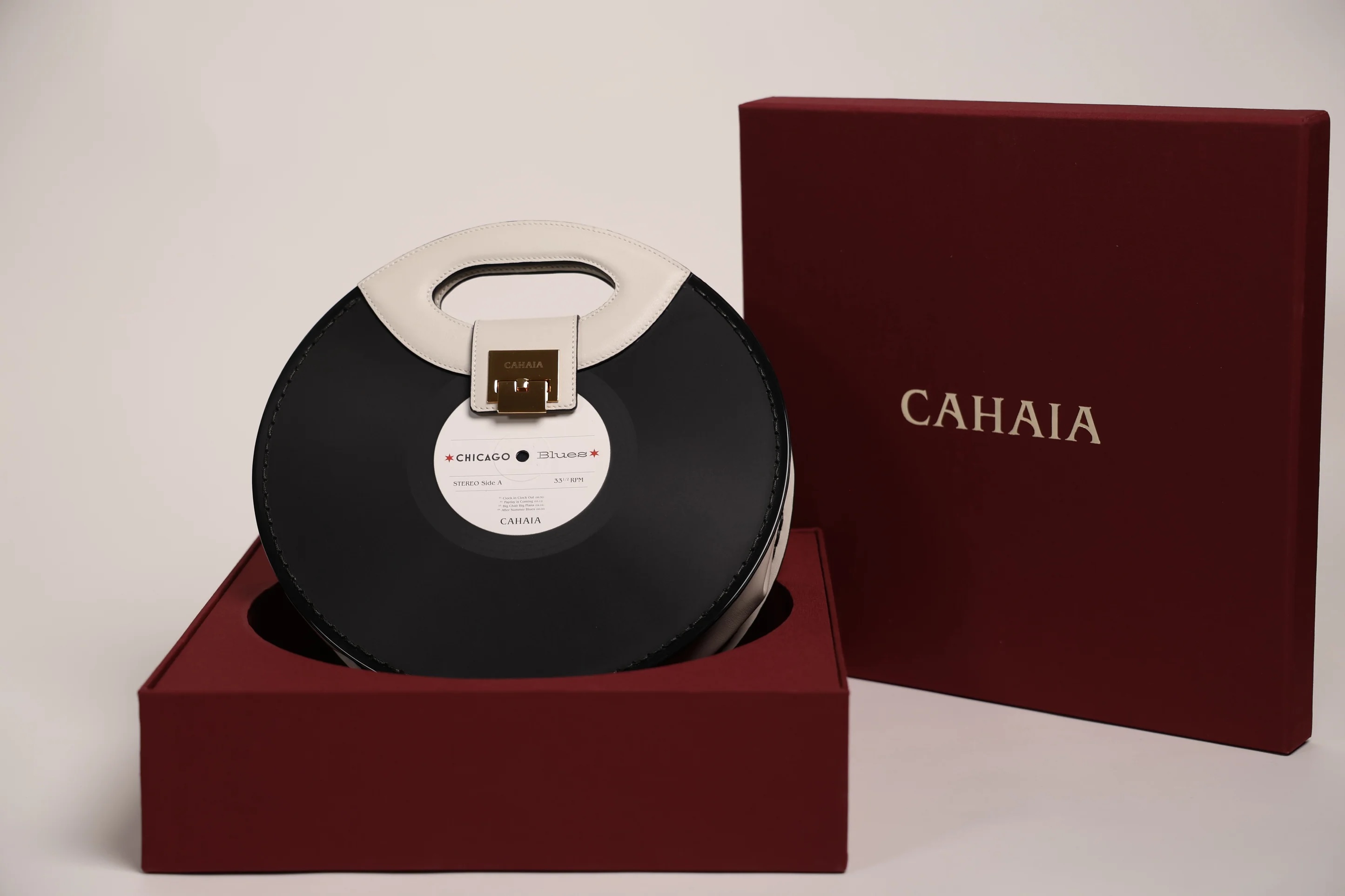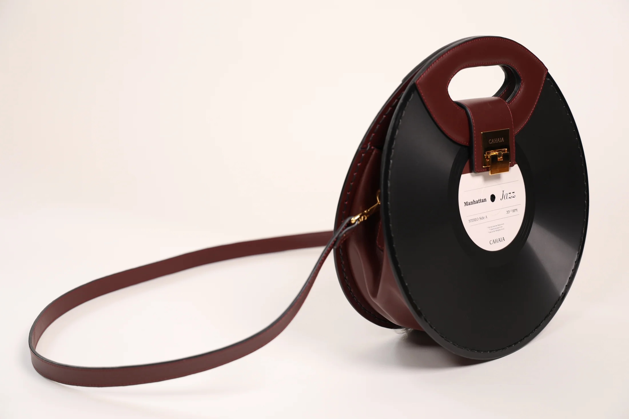 Vinyl designs for Cahaia. Cahaia is a family-owned business making luxury hand bags from vinyl records. Each vinyl label reflects a musical genre and a city.