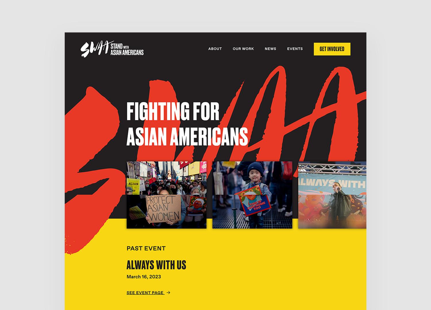 This type-forward identity is based on the visual language of protest. A condensed sans serif lends an air of urgency while the warm color palette ensures that the identity feels welcoming. We were careful to avoid specific Asian symbols to avoid alienating specific AAPI communities.